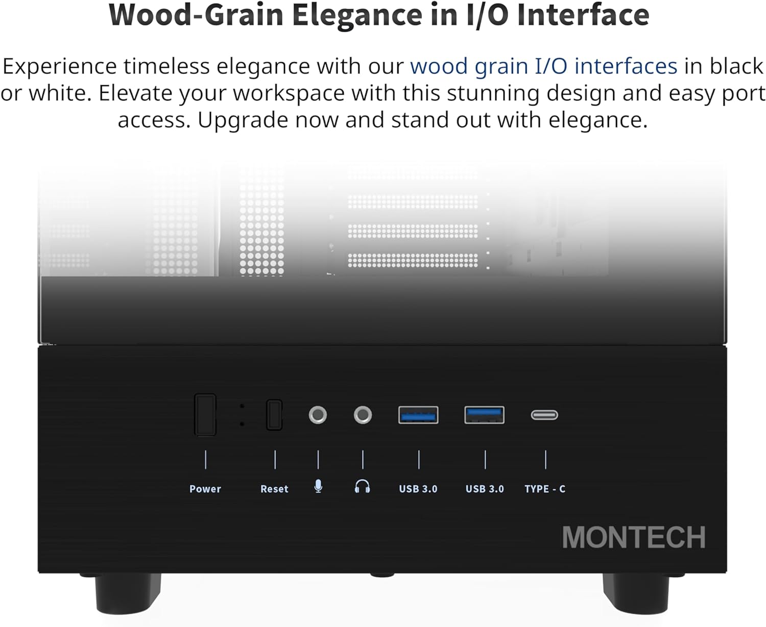 Introducing the MONTECH XR ATX Mid-Tower PC Gaming Case, the perfect blend of style and functionality for any gaming setup. This sleek black case features a unique wood-grain design I/O interface that adds a touch of sophistication to your gaming rig.