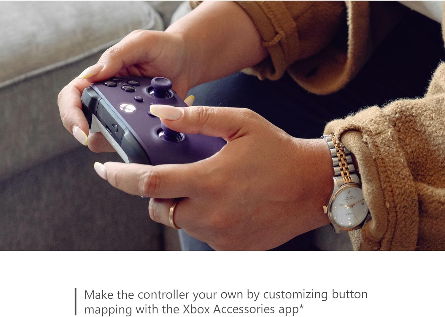 The Xbox Wireless Controller Astral Purple is the perfect accessory for gamers looking to enhance their gaming experience. This controller features both wireless and Bluetooth connectivity, allowing you to easily pair and switch between devices with ease. The new hybrid D-pad and share button offer improved functionality, while the textured grip ensures a comfortable and secure hold during extended gaming sessions. Whether you’re playing on your Xbox console or PC, the Xbox Wireless Controller Astral Purple is sure to take your gameplay to the next level.